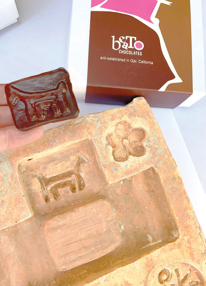 During my visit to the Beato Chocolate Lounge, the synergy between the gallery and the chocolate business was literally on display. An exhibit of hand-colored etchings made by Wood when she was in her 90s was getting finishing touches in preparation for its opening that weekend in the Porch Gallery. To accompany the exhibit, Beato Chocolates produced limited-edition boxes that include a luster-glaze medallion from Wood’s molds by Nancy Martinez, a former studio assistant to the artist.